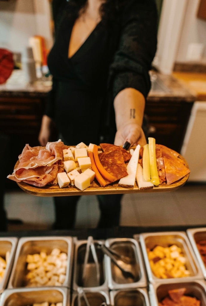 “Our custom-built cart lets guests create their own boards from a curated selection of meats, cheeses, house made dips, fresh crudités, pickled add-ons, and artisanal crackers,” Rachel shared. They can be found offering their custom boards at locations like breweries and wineries, in addition to private venues such as corporate lunches and functions.